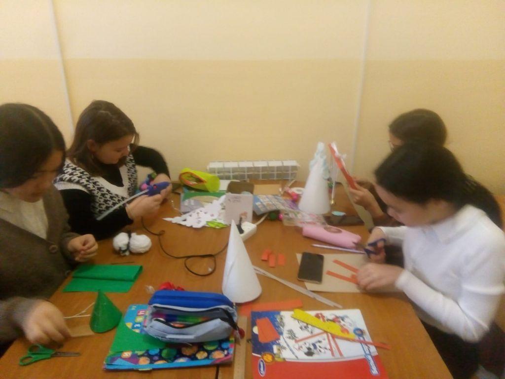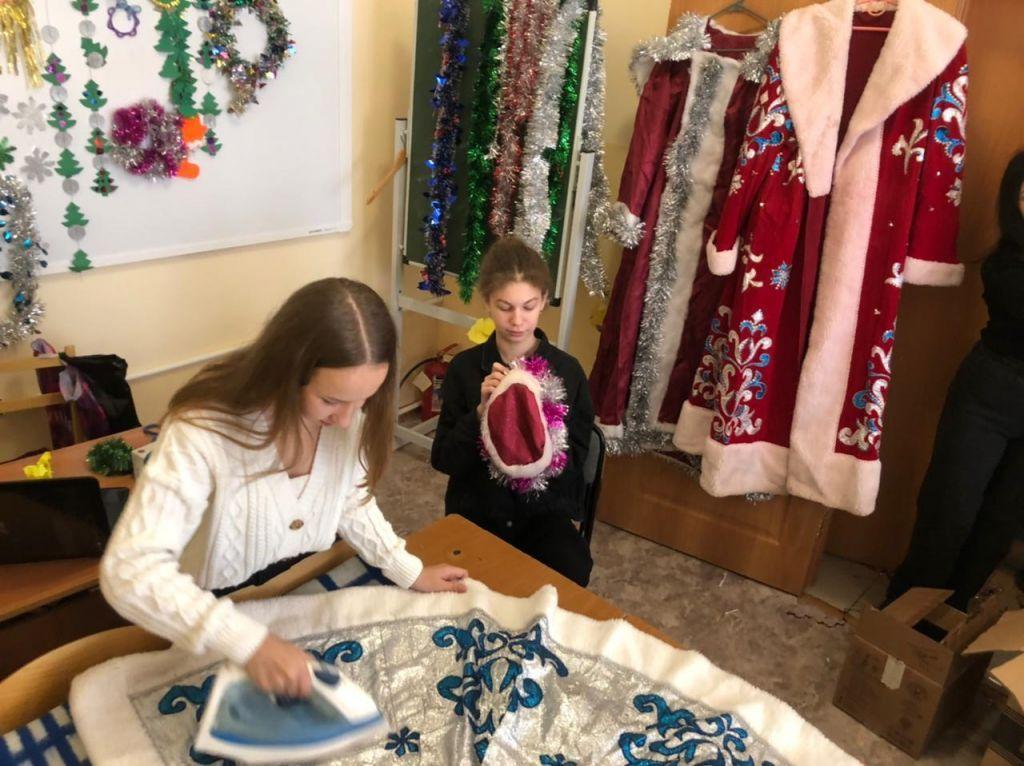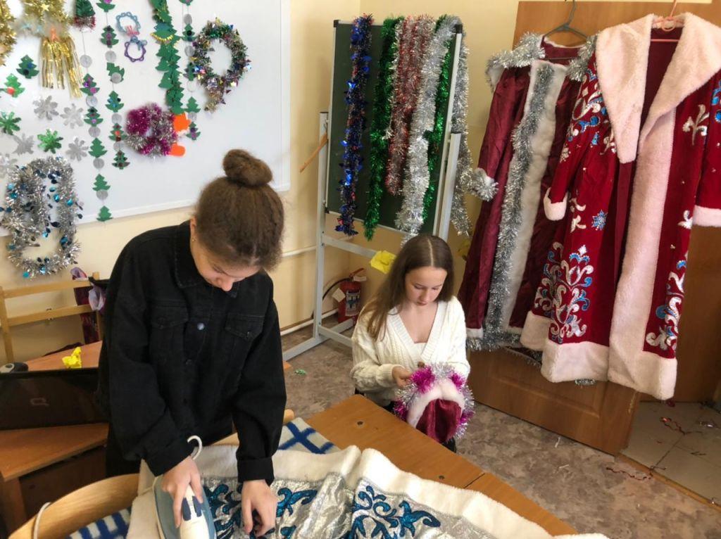 В шк №2 вновь открылась "Мастерская Деда Мороза", где девочки 6-7 классов приводят в порядок новогодние игрушки, вырезают снежинки, украшают костюмы Деда Мороза и Снегурочки.