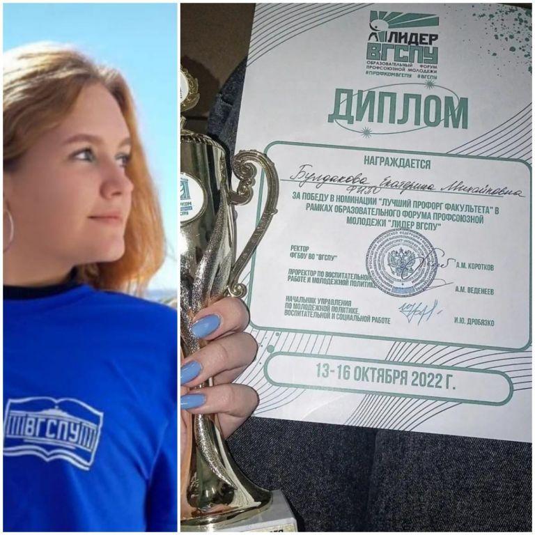 Катя Булдакова, выпускница нашей школы, ныне студентка ВГСПУ, победила в конкурсе "Лучший профорг факультета", поздравляем. Молодец!