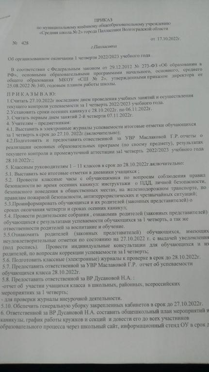 "Об организованном окончании 1 четверти 2022-2023 учебного года"