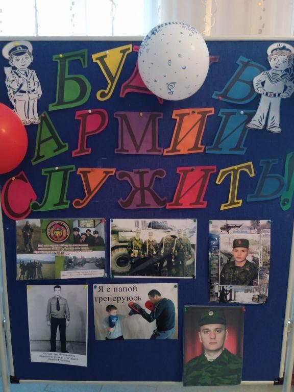 В преддверии праздника Дня защитника отечества на первом этаже школы оформлены стенды "23 февраля" и "Буду в армии служить".