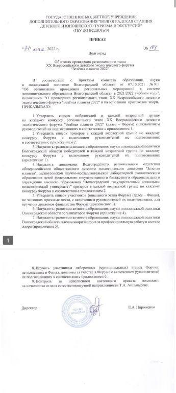 Приказ "Об итогах регионального этапа конкурса"