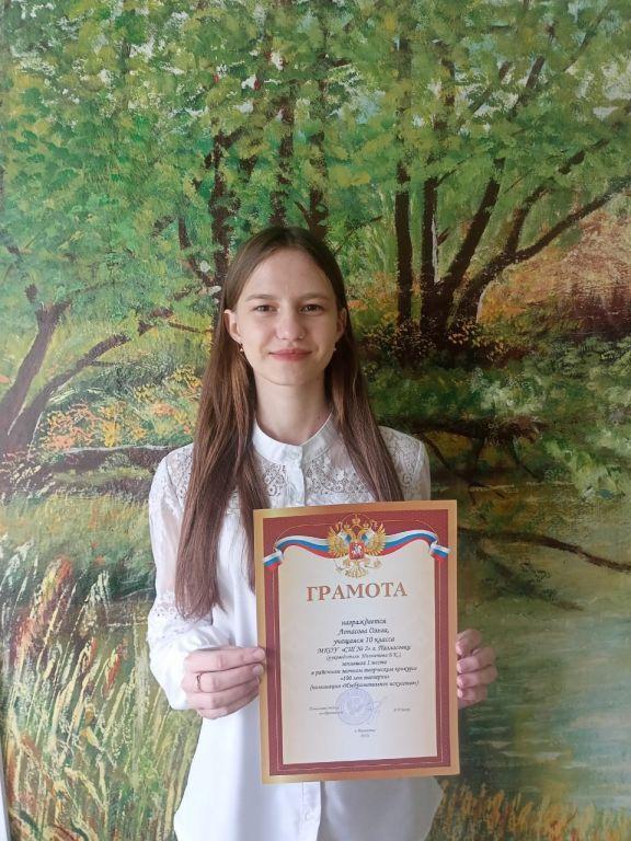 Победитель конкурса - ученица 10 класса Лопасова Ольга