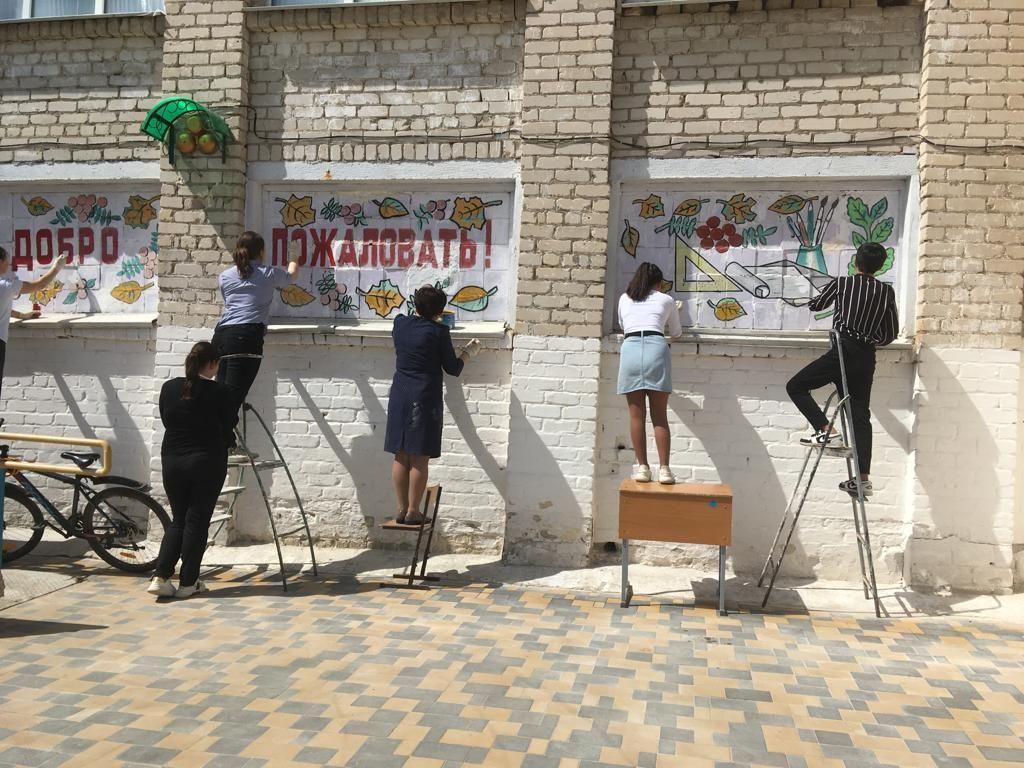 Спасибо Бибигуль Калиевне и учащимся 8 в класса за обновление лозунга к 1 мая и фасада школы. МОЛОДЦЫ!!!