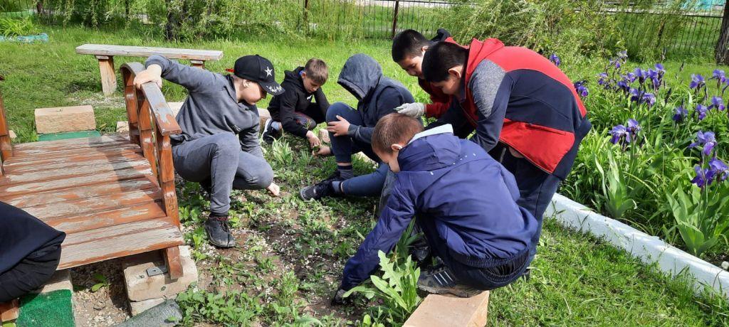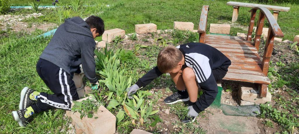 Уборка своего уголка школьного двора в летний период