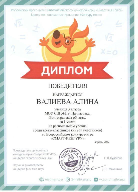 25 января 2022 года состоялся всероссийский математический конкурс-игра «Смарт-КЕНГУРУ», в котором приняли участие учащиеся 1а, 2а, 2в, 3б, 3в, 6б, 6в, 7б, 7г, 8а классов, всего 32 человека. По результатам конкурса: 2 победителя на региональном уровне; на муниципальном уровне – 5 учащихся -1 место, 2 – 2 место, 6 -3место. Все участники получили дипломы, сертификаты и сувенирную продукцию центра технологии тестирования «Кенгуру плюс».