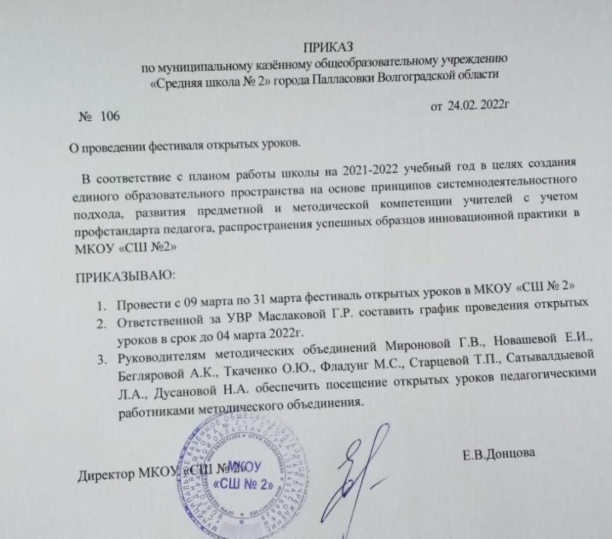 Приказ о проведении Фестиваля