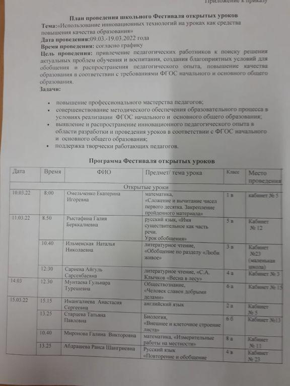 Фестиваль открытых уроков