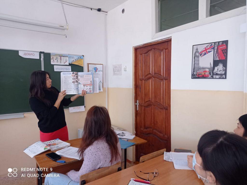 Молодым педагогам английского языка: Додоновой Ж.Д. и Усунгалиевой А.А. наставник Сатывалдыева Л.А. регулярно оказывает методическую помощь в написании планов уроков, внеклассных мероприятий, подготовке к ОГЭ и ЕГЭ , а также по написанию исследовательской работы в 10 классе.