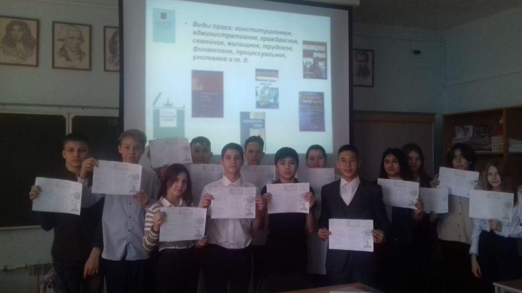 Работа в школе по правовому воспитанию способствует решению задач по профилактике правонарушений несовершеннолетними и воспитанию гражданских свойств личности. 29 ноября в 8в классе прошёл классный час по правовому воспитанию. Учащиеся приняли участие в дискуссии, разбирали ситуации в которых участвовали 14-15 летние подростки, определяли их статус и меру ответственности, рассказывали о своей гражданской позиции. По окончании каждый получил буклет.