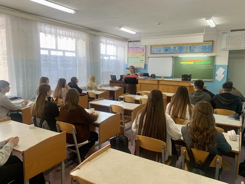 20 февраля с учащимися была проведена интерактивная беседа с элементами тренинга на тему «Профилактика девиантного поведения: психологический климат в коллективе». В ходе встречи были раскрыты понятия «девиантное поведение» и его возможные причины (как способ привлечения внимания или реакция на трудности). Основной акцент был сделан на формирование благоприятной атмосферы в классе как ключевого фактора профилактики конфликтов и асоциальных поступков.