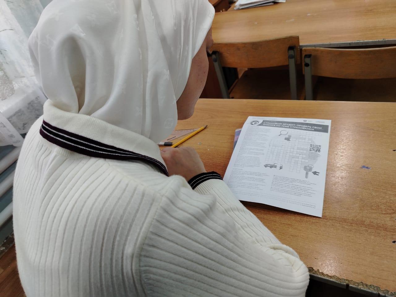 12 ноября 2025 года. Учащиеся разгадывали кроссворд «Страховой эрудит». Вопросы связаны с темами: договор страхования, страховые компании, страховой случай, страховой полис.
